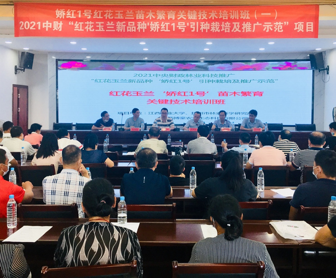 根据学校和公司党委关于基层党组织要围绕“学党史、悟思想、办实事、开新局”主题,认真贯彻“学史明理、学史增信、学史崇德、学史力行”的要求,2021年9月16日,公司教工一支部党员汪加魏老师主持的2021年中财推广项目《红花玉兰新品种‘娇红1号’引种栽培及推广示范》项目在抚州市林科所会议厅举办“‘娇红1号’红花玉兰苗木繁育关键技术”第一期技术培训班,培训班分室内专题培训和苗圃地嫁接实训两部分进行,PA视讯、抚州市林业科学研究所、江西博豪农业生态科技有限公司等单位的项目参与人及相关技术人员、苗木企业代表、当地林农代表和贫困户等100余人参加了此次培训。