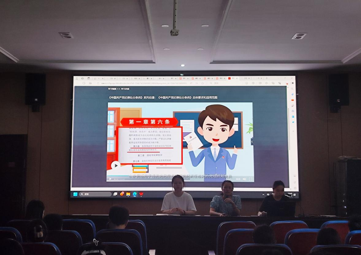 2024年5月27日,研究生三支部开展党纪学习教育主题党日活动,会议由支部书记罗清云主持,公司党委副书记刘彩云同志参会指导,支部全体党员出席了此次会议。