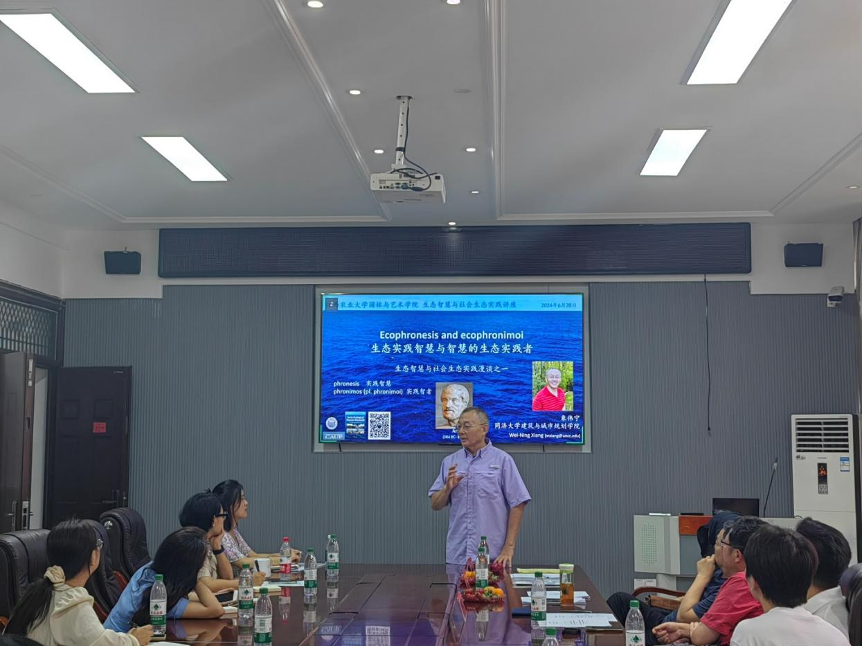 为拓宽员工视野,提升专业素养,6月28日上午,美国北卡罗来纳大学教授象伟宁、同济大学王云才教授、南京林业大学汪辉教授应邀来到公司开展风景园林系列学术交流,在园林与艺术学院院办316开展了名为“生态实践智慧与智慧的生态实践者”的系列学术讲座,本次讲座由公司党委书记刘纯青教授主持,采用线下线上结合的模式,线下包括学院教师代表、部分博士和硕士研究生,同时线上还吸引了一批校内外师生参与聆听。