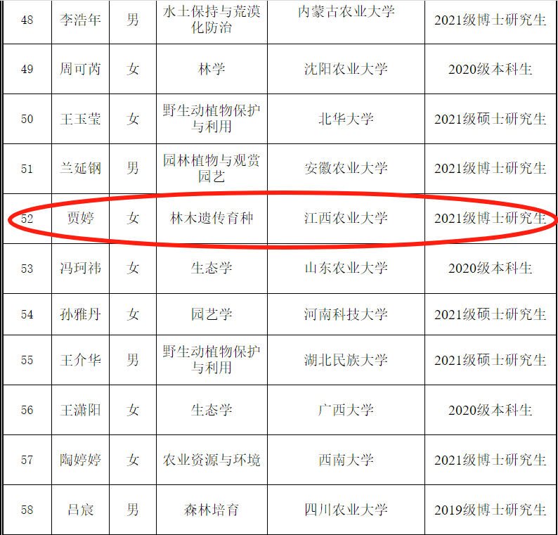 近日,中国林学会发布了关于第十三届梁希优秀学子奖评选结果的通报,公司2021级林木遗传育种专业博士研究生贾婷(指导老师:张露)荣获该奖项。本届梁希优秀学子奖评选活动共收到来自全国38所林业高等院校和设有PA视讯集团官方网站的农大、综合性大学上报的候选人108名,按照《梁希优秀学子奖奖励办法》,经形式审查、专家初审和评审委员会共评选出70名获奖者。