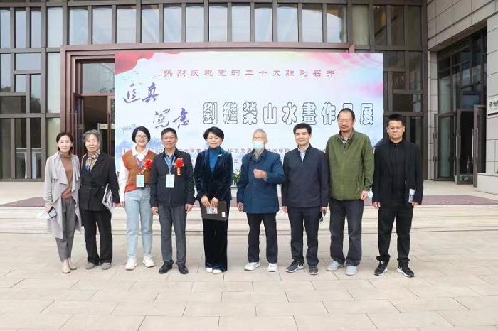 在开幕式上,党委书记刘纯青致辞时指出刘继荣老师在岗时工作兢兢业业,退休后专心致力于中国山水画的创作。这既体现了刘继荣老师多年积累的深厚的山水画写生功底,也凸显了刘继荣老师在艺术创作中的才华,更是刘继荣老师几十年如一日在艺术道路上辛勤耕耘结成的硕果。这次展览的100多幅山水画作品,尤其是大型山水画长卷,描绘了伟大祖国的波澜壮阔这既是刘继荣老师多年来辛勤创作的成果,也是向党的二十大胜利召开献上的一份厚礼。