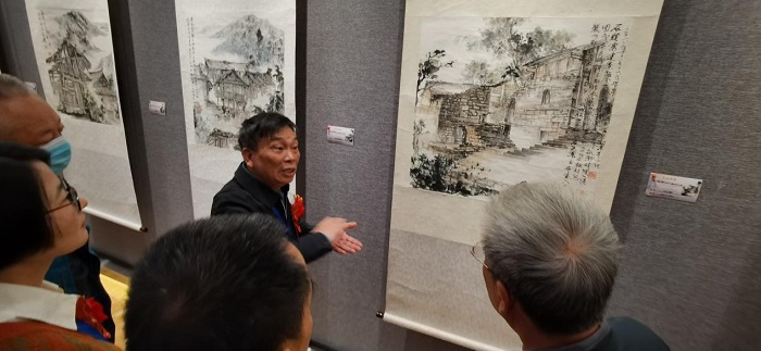 20221029上午公司退休教师刘继荣老师追真写意——刘继荣老师山水画作品展南昌市老干部活动中心开幕。公司党委书记刘纯青、绘画教研室、环境设计教研室部分教师代表参加了开幕式。