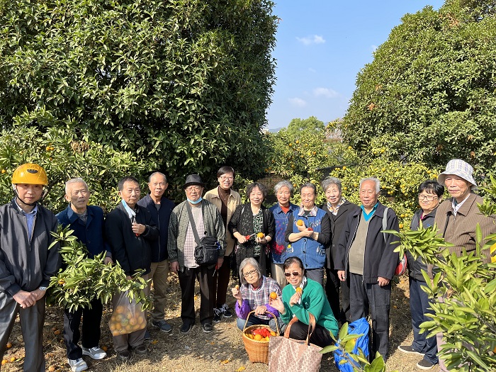 活动当天,阳光温和。走进桔园,老同志们边品尝、挑选,边拉家常,品尝亲手采摘的桔子,与他人分享采摘果实;互相了解最近的生活状况,整个活动洋溢着轻松愉悦的气氛。在汗水与收获的满足中,老同志们充分体验了一次采摘的乐趣。