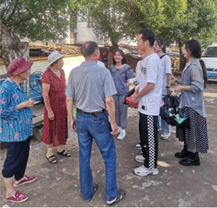 “心心向农·乡村调研团”队员和村民了解当地情况