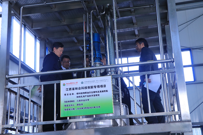 由江西省林业生态建设中心阙龙善正高级工程师和吉安市林业事业发展服务中心曾广腾正高级工程师组成的现场查定专家组,听取了项目主持人廖圣良对项目执行情况的总体汇报,现场查看了项目组在中心中试基地建立的中试化生产线经质询讨论,一致同意通过现场查定。