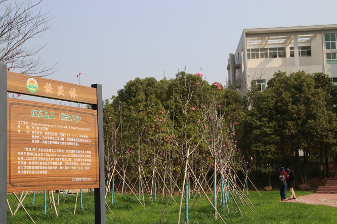 为加强该树种的推广应用,学院主持承担了中央财政林业科技推广项目“红花玉兰新品种‘娇红1号’引种栽培及推广示范”,2021年已造林1万余株,面积约240亩。