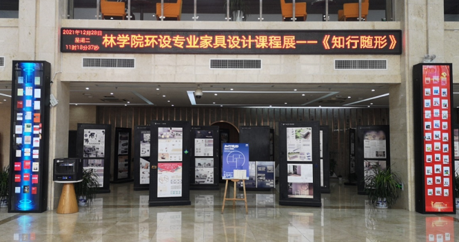 20211228日-20221月4日,学院“知行随形”家具设计课程展在校图书馆二楼大厅举行。展览由环境设计专业主办,展出的作品是环境设计专业2019级全体同学《家具设计》课程作业。学院领导参观并指导教学成果展,在课程思政、作品成果转化、能力培育以及课程实践特点进行了点评和指导。