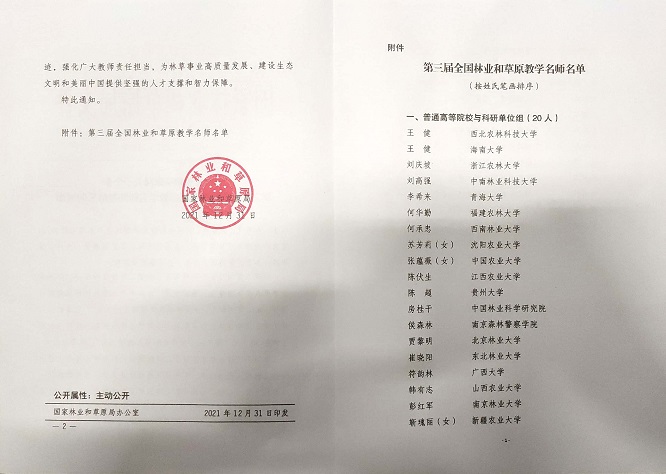 近日,国家林业和草原局公布了第三届全国林业和草原教学名师评选结果,此次共有30人入选,公司经理陈伏生教授位列其中。