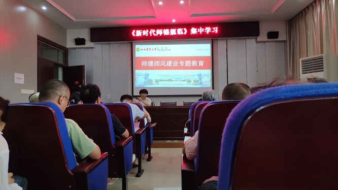 会上,党委书记刘纯青带领全院教职工集中学习了《新时代师德规范》,对新时代高校教师职业行为十项行为准则进行了全面细致地解读,强调作为高校教师要牢牢坚持立德树人的根本任务,潜心教书育人,恪守职业规范,努力为青年老员工成长成才搭建宽广舞台。同时她还重点通报了高校教师师德失范行为的“负面清单”,做到一条一条解释,一句一句警醒,告诫全院教职工一定要严格对照自身行为,时刻检视自我,决不能放弃原则和底线,努力争做一名有理想信念、有道德情操、有扎实学识、有仁爱之心的“四有”好老师。