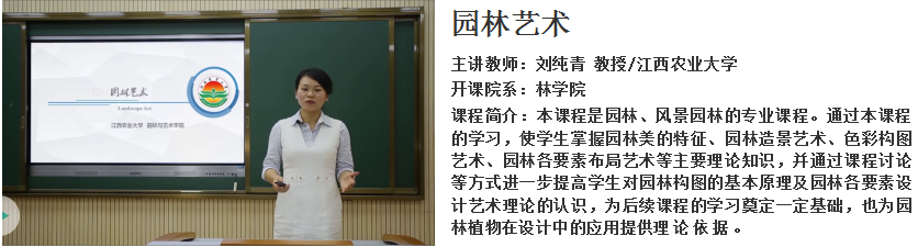 该课程由副经理刘纯青教授领衔,以课程团队开发的“《园林艺术》省级精品资源共享课和精品在线开放课”为支撑。省级精品在线开放课程《园林艺术》2018年3月开始在超星平台运行,2019年3月同时在智慧树平台开展,共进行了6轮,平台累计学习人数7252人,累计选课学校42所,共有56100余次互动(http://www.zhihuishu.com http://i.mooc.chaoxing.com/)。线上教学效果良好,辅导答疑见面会达到授课要求,已基本形成可示范推广的在线教学模式。课程教学团队制订了线上线下相结合的混合式教学方案,在本校应用4轮,已形成了可示范推广的混合教学模式。