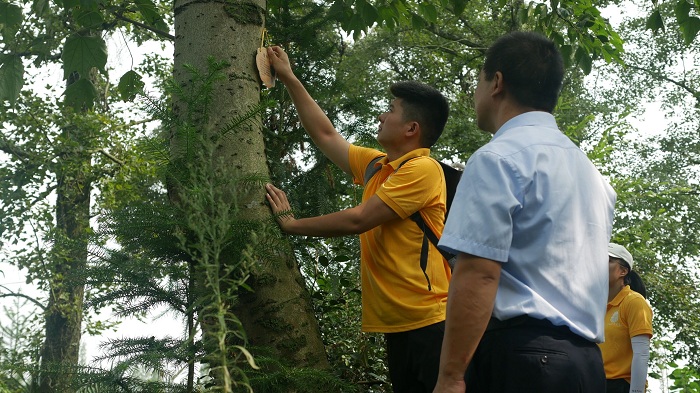 2020年8月22日,伴着清晨的阳光,PA视讯园林与艺术学院研三支部“响应规划下乡,服务乡村振兴”党员服务团开启了新一天服务江口村的征程。上午8:30,在江口村支部委员杨新宇同志及孙村长的带领和讲解下,服务团沿着搜神路深入这座仙女湖畔的秀美村庄,用心聆听这里厚重的历史,在前行的脚步中感知这里的村落文化。在走访中,服务团成员一边领略着这里淳朴的风土人情,一边对当地居民进行问卷调研,通过问卷的方式渐渐了解当地居民的生活现状、挖掘居民需求痛点,以“问卷换位”思考,将针对居民整体情况及反应的突出问题纳入规划当中,真正让规划服务符合当地民生需求,让党建活动走入群众心中。沿搜神路向村组前行,这里规整的民居和整洁的村落卫生环境在服务团成员的脑海中印刻出“一屋一院一小树,一山一水一人家”的宜居画面,在成员们的心中留下了深刻的印象。在走访调研的同时,服务团也时刻牢记“受教育、长才干、做贡献”三下乡理念,为村中的特色古树挂上了制作精美的树种介绍牌,通过文字和微信二维码为居住和来到这里的人们普及树种知识,为当地乡村旅游的优质体验助力。
