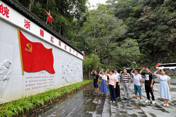7月27日,支部来到了婺源大鄣山莒莙村红色革命根据地开展“不忘初心、牢记使命”主题教育。参观村革命纪念馆,重温入党誓词,接受革命传统教育,寻找共产党人的初心与使命。莒莙村村支部书记吴书记为支部成员讲了一堂生动质朴的红色故事,激发了同学们作为高等林业人才悟初心和使命的思考。