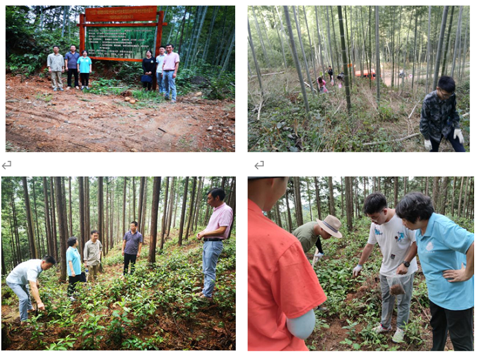 郭晓敏教授一行还调查了国家老员工创新创业项目和研究生创新基金项目林下经济经营模式,重点调查了杉木+草珊瑚、杉木+红豆杉、杉木+香榧+草珊瑚、和不同海拔枫香+茶树等四种林下复合经营种植模式的主要树种和伴生树种生长及收益情况。还就冷水林场林下经济和乡村森林公园建设及发展森林旅游等,深入林区山头,开展社会调查。与林场管理者、林农林下种植模式、乡村森林旅游发展进行交流和探讨。