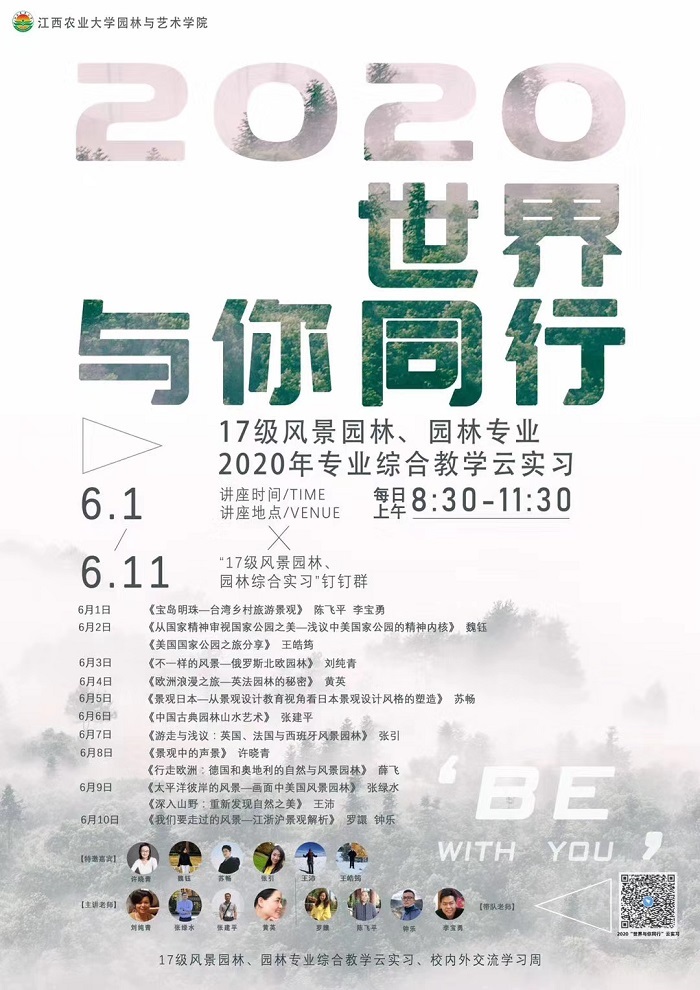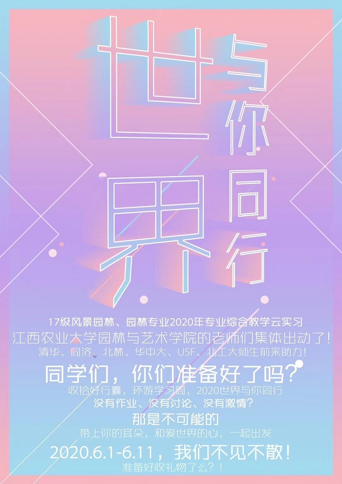 2020年6月1日-11日,公司园林与艺术学院17 级风景园林、园林专业“世界与你同行”主题综合教学云实习顺利举办。