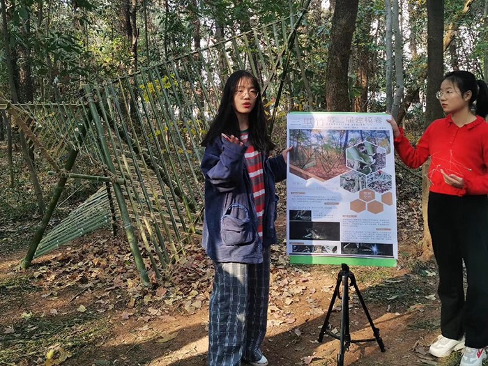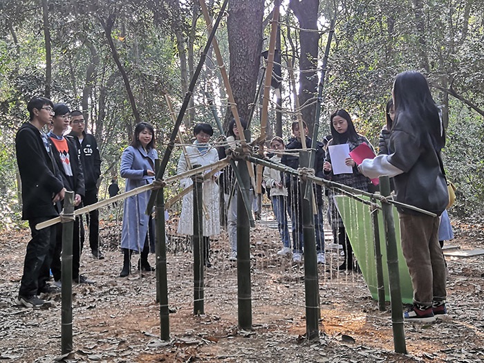 此次决赛由园林与艺术学院副经理刘纯青教授、硕士生导师李媛老师、城乡规划教研室郑沁老师及李婵老师担任评委。大家首先前往小树林观看各项作品,各组选手依次向评委介绍作品并陈述设计思路,评委分别对每项作品进行了点评和评分,并提出了宝贵建议。
