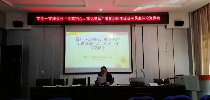 2019127日学院员工一支部在院办111会议室召开支部党员大会,会议主题不忘初心、牢记使命专题组织生活会和民主评议党员会,会议由支部书记谢菊英同志主持,支部全体党员出席会议。