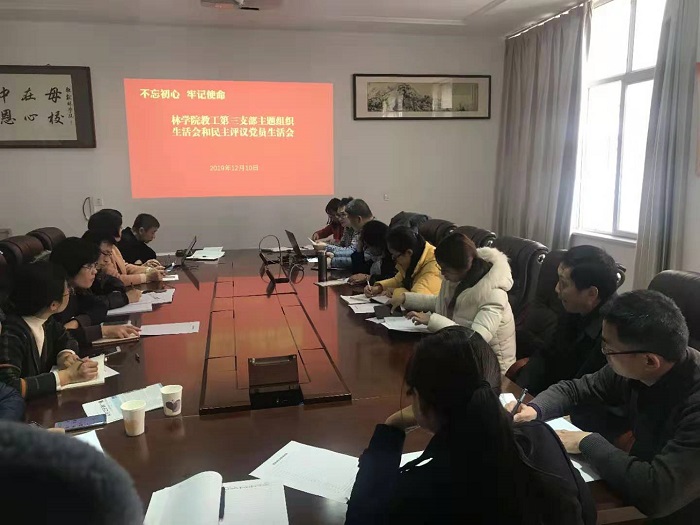 20191210日下午,PA视讯集团官方网站教工第三党支部党员在院办203会议室召开了“不忘初心、牢记使命”主题教育专题组织生活和民主评议党员会。会议由支部书记叶清主持,森保、气象、园林植物、测量等教研室党员参加。