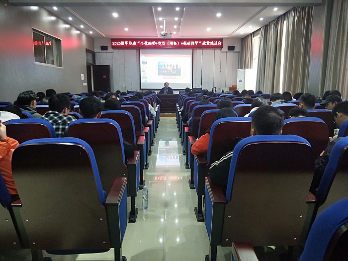 继班主任就业工作会议之后,公司于11月21日召开2020届毕业班“员工骨干”就业工作推进会,公司党委副书记王建胜出席会议,毕业班全体班委、中共党员(预备)、保研同学共计106人参加会议,会议由院就业干部盛开勇主持。
