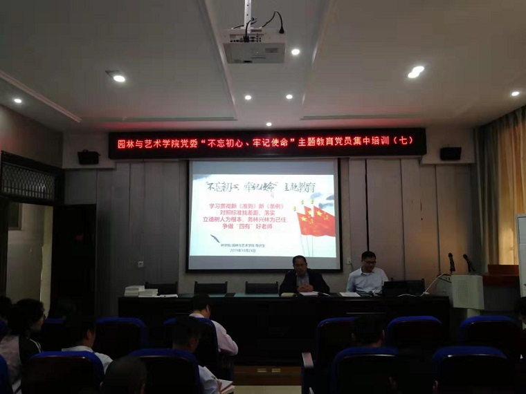 公司党委委员、副经理陈伏生同志作了以《学习贯彻新< 条例>、新< 准则>,对照标准找差距,落实立德树人为根本,务林兴林为己任,争做“四有”好老师》为主题的专题学习报告。陈伏生同志从两项法规的修订背景、廉洁自律准则的修订解读、廉洁自律准则的具体内容、党纪处分条例的“五大亮点”、 党纪处分条例的具体内容、负面清单“六大纪律”、 新时代高校教师职业行为十项准则、争做新时代“四有”好老师、对标与整改等九个方面谈了自己的学习体会,陈伏生同志还对照《准则》和《条例》、对照《新时代“四有”好老师》 检视自己存在的差距并提出自己下一步整改计划。