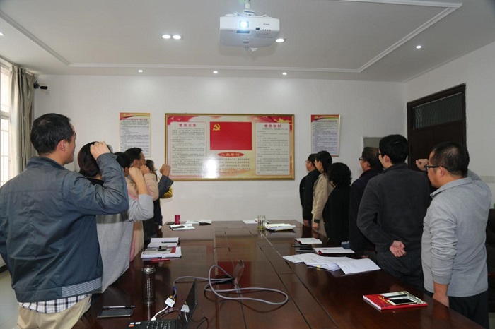 会议由支部书记胡冬南主持,副经理陈伏生同志参加了此次主题教育活动。会议开始前,全体党员在公司党委副书记王建胜的带领下重温了入党誓词。陈伏生同志在会上作了“激发中青年教师干事热情,加强教师队伍建设,支撑学院“双一流”建设”的专题讲课,他从中青年教师在工作生活中碰到的实际问题入手,结合教书育人,就有关如何激发中青年教师工作热情,加强“教师队伍建设”等方面进行了剖析,并结合自身职责提出了今后工作的努力方向。胡冬南同志做了习近平在“不忘初心、牢记使命”主题教育工作会议上讲话的专题讲课,阐明了主题教育的背景、内涵、使命等内容。