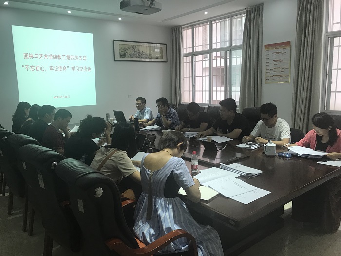 2019年9月26日下午,园林与艺术学院教工第四党支部在院办203室开展“不忘初心、牢记使命”主题教育。