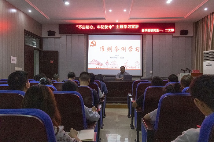 学习宣讲结束后,研究生一、二支部党员同志们进行了学习交流,畅谈了各自的学习心得体会,纷纷表示对新《准则》《条例》有了新的认识,今后要把学习《准则》和《条例》与学习党章、党的十九大精神等紧密结合起来;要真正学深悟透、融汇贯通,做到内化于心、外化于行,增强贯彻执行的自觉性和坚定性。