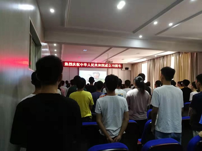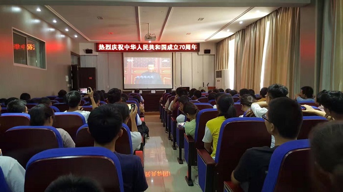 2019101日,公司党委组织师生集体收看国庆70周年庆典,学院开放了3个会议室,140余名师生参加了集体收看活动。当直播升旗的时候,大家不约而同起立,同唱国歌。大家怀着激动的心情认真聆听习近平总书记的重要讲话,观看威武的人民军队方阵走过天安门。全体师生为中华人民共和国成立70年来的伟大成就、为人民军队的现代化感到无比的自豪和骄傲。