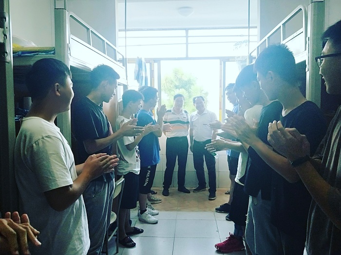 公司党委书记周水平,公司党委副书记王建胜,主管员工工作的盛开勇和王茜妮老师进行了多次热切的下寝慰问,了解新生对宿舍的适应程度,对员工嘘寒问暖。公司党委副书记王建胜指出,同学们要认真阅读“大学漫谈”系列文章,要树立正确的目标,努力学习,成为合格的新时代青年。公司党委书记周水平对新生提出了四点希望,一是学院是百年老院,学院历史悠久、团队力量雄厚,希望同学们要树立自信心,以母校为荣;二是学校马上就要组织开展系列新生入学教育,希望同学们带好纸和笔,认真记认真体会,了解专业知识,尽快适应老员工活;三是同学们来自五湖四海,生活习惯有所差异,希望同学们团结友爱,互助进步;四是希望同学们树立远大目标,用心、用功、用力过好老员工活,成为社会主义合格建设者和可靠接班人。