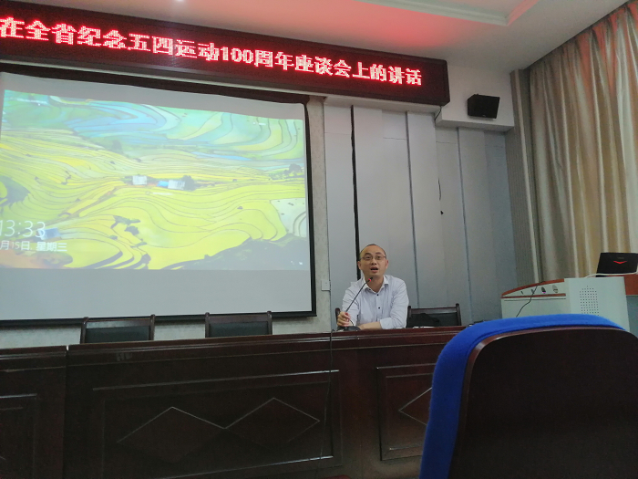 陈小志老师在座谈会讲到:“新时代中国青年要继续发扬五四精神,以实现中华民族伟大复兴为己任,不辜负党的期望、人民期待、民族重托,不辜负我们这个伟大时代。”牢记习近平总书记在纪念五四运动100周年大会上的讲话中对新时代中国青年提出了要“树立远大理想”“热爱伟大祖国”“担当时代责任”“勇于砥砺奋斗”“练就过硬本领”“锤炼品德修为”六点要求。同时,学习江西省委书记刘奇在全省纪念五四运动100周年大会的讲话。五四运动,是我们青年一代要永远高举的精神旗帜,要永续传承的血脉基因。作为新时代青年,我们要勇敢接过先辈传递下的接力棒,尽全力跑好我们这一棒!