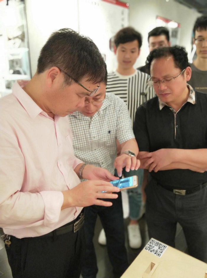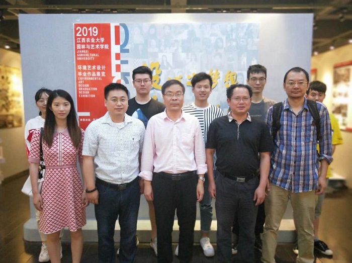 展览期间,公司党委书记周水平与公司党委副书记王建胜到场参观。参观过程中周水平书记用手机现场扫描了展品上的二维码,通过扫码体验了VR室内设计全景效果,并对展示效果给予了高度评价。周水平书记指出,环境设计专业应该紧跟时代发展潮流,艺术与技术并轨,将设计创新提升至新的高度。参观尾声,周水平书记与王建胜副书记在同学们的热情邀请下合影留念,鼓励即将踏上人生新征程的同学们再接再厉,奋发前行。