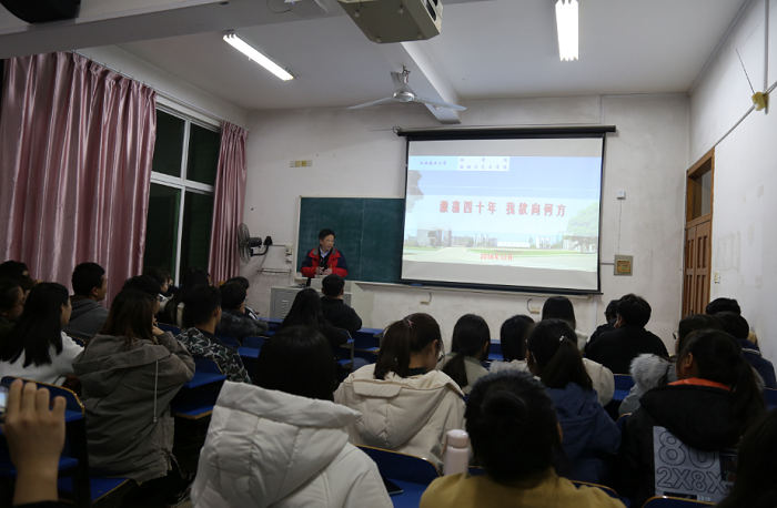 125日晚,环境设计1801班专题班会,结合班会谈理想的主题,杨光耀经理登上讲台,为学院本科生讲授了一堂题为《激荡四十年,我欲向何方》的思政课,与员工共谈理想。