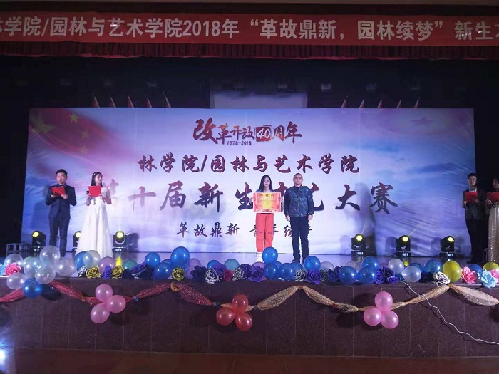 经过两个多小时的激烈角逐,经评委现场评议,大赛最终评选出一等奖1名,二等奖2名,三等奖3名,优秀奖6名,最佳人气奖1名,才艺新星奖2名。其中,林学1801班《super show》获一等奖;城规1801班《国家》、环设1802班《招聘会》获二等奖;林化1801班《向领导报告》、林学1801班《Let's dance》、风园1801班《上学那些事》获三等奖;林学1802班《游击队歌》、环设1803班+林学1801班《父亲的草原母亲的河》、环设1801班《哥俩走地名》、环设联队《环设音乐show》、园林1801相声《我是歌手》获优胜奖;林化1801班《向领导报告》凭借超高的支持率获得最佳人气奖;环设1803班沈子豪、林学1802班简雯靖表现突出,荣获才艺新星奖。