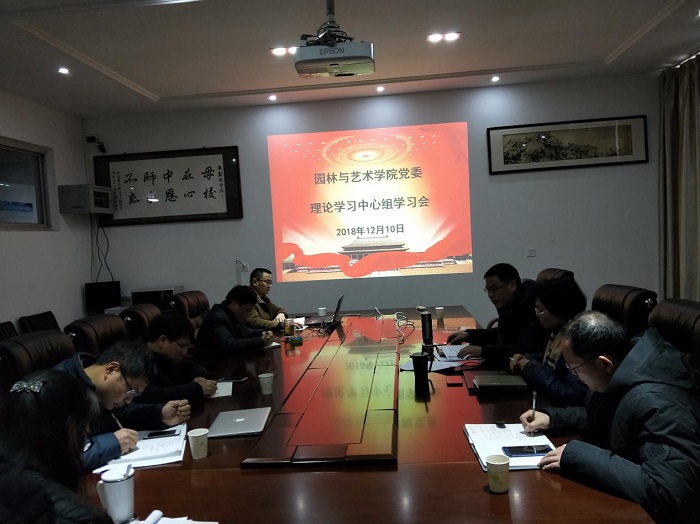 2018年12月10日上午,PA视讯集团官方网站/园林与艺术公司党委在公司党员活动室召开党委理论学习中心组学习会,会议由公司党委书记周水平同志主持,经理杨光耀、植物天然产物与林产化工研究所所长王宗德、党委副书记王建胜、副经理刘纯青、党委党员陈伏生参加了会议。