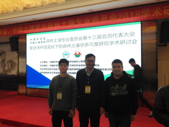 2018119~12日,森林土壤专业委员会第十三届会员代表大会在湖南怀化召开,会议由中国林学会、中国土壤学会森林土壤专业委员会主办,中国科学院沈阳应用生态研究所会同森林生态实验站、怀化学院生物与食品工程学院、民族药用植物资源研究与利用湖南省重点实验室和亚热带森林生态系统结构与服务功能湖南省重点实验室承办。会议主题为:全球环境变化下的森林土壤学多尺度研究。来自全国各地从事森林土壤科技工作者交流了最新的研究成果,公司师生在会议上交流相关学术研究结果。大会评选了优秀论文,公司研究生吴高洋、张强获青年学术报告优秀奖。同期召开中国林学会森林土壤专业委员会换届会,陈伏生教授当选常务理事、刘苑秋教授当选理事。