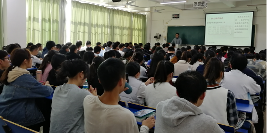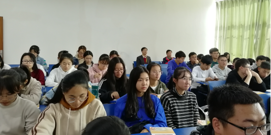 20181130日下午,公司党委书记周水平教授、经理杨光耀教授来到5428教室,和林学1801、林学1802和园林1801的员工们一起,聆听了政治学院董甲河老师讲授的《思想道德修养与法律基础》课程。