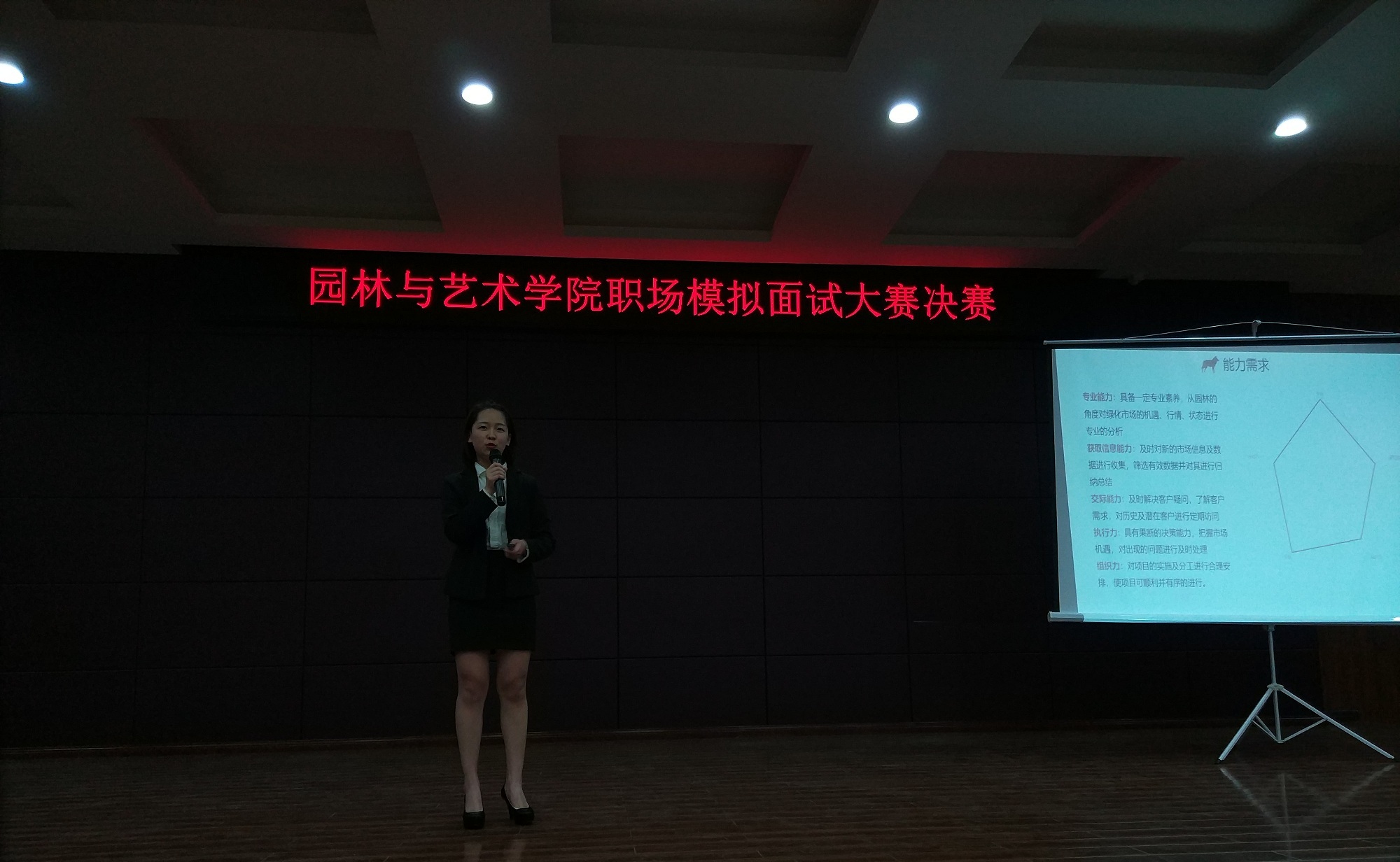 为了提高同学们在求职过程中的面试技巧和能力,学院团委于近期举办了职场模拟面试比赛,经过初赛的简历筛选和复赛无领导小组讨论两个环节,最终10名选手进入到了决赛。421日晚,决赛在校老员工活动中心501多媒体报告厅举行。此次比赛专门邀请了江西景华园林有限公司的副总经理高勃然和园林专业陆金森老师担任评委。经过简历评审、自我展示、评委提问三个环节,最终评出一等奖一名,二等奖两名,三等奖三名,优秀奖四名。