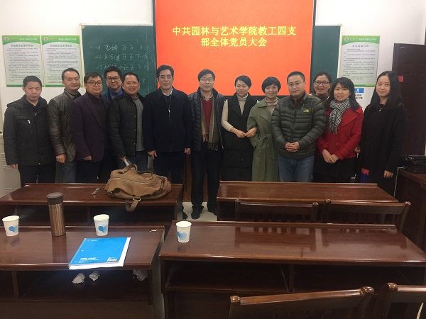 2018123日下午,中国共产党园林与艺术学院教工四支部全体党员大会在院办大楼113室召开。公司党委书记周水平教授、副书记王建胜、副经理刘纯青教授等领导出席了大会。此次大会由张绿水同志主持。大会应到支部成员17人,因病因事请假3人,实到14人,符合会议召开规定人数。