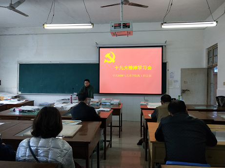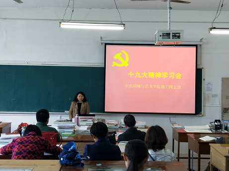 201711月17日上午10点,在4教306室,中共园林与艺术学院教工党员四支部进行十九大精神主题学习会,不仅有支部的党员,而且还邀请了风园专业、环设专业的研究生和本科生参加学习。