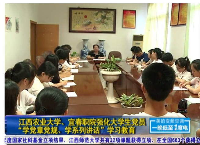 在学校和公司党委的统一领导和部署下,公司“两学一做”学习教育有组织有计划地开展。622日,江西教育电视台来公司采集“两学一做”学习教育新闻素材,拍摄了员工党支部学习、讨论等情况,并对刚刚在全省老员工党员“两学一做”党的基本知识电视竞答比赛中荣获优秀选手林学1301班的曾俊同学进行了采访。该新闻在当晚江西教育电视台教育新闻栏目播出。