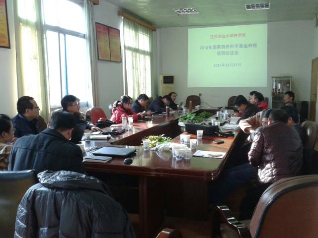 201512月27日,为了进一步推动2016年国家自然科学基金项目申请,提高项目申请成功率,学院召开选题论证会,拟申请2016年国家自然科学基金项目的教师介绍了项目名称、研究内容和研究思路。学院邀请部分首席教授和学科负责人对各申请人的项目提出意见和建议。全院20多名教师参加了论证会。最后,杨光耀经理希望各位老师将申请项目多集中到林业主要树种,多围绕森林质量及生产力提高来进行设计,以现有项目的成果和论文为基础,认真撰写项目申报书。