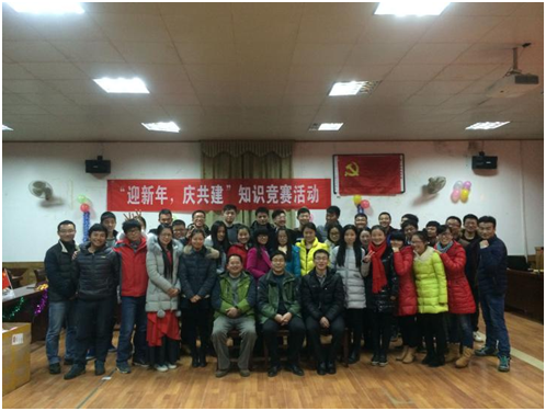 2015年12月28日晚,园林与艺术学院研究生第一党支部2015年“迎新年,庆共建”知识竞赛活动顺利开展。中共党员、积极分子及其他支部同志40余人参加本次活动。公司党委书记周水平同志、党委副书记王建胜同志应邀到场,参与共度。活动紧扣“迎新年,庆共建”主题,围绕知识竞赛、才艺展示、组队比拼、奖励颁发等环节欢畅进行。首先以《礼仪之邦》舞蹈拉开序幕,并在主持人宣读规则后,宣布竞赛开始。围绕《中国共产党章程》、PA视讯校园校史等出题,考查大家对中国共产党、PA视讯的了解状况,并借此达到宣传、学习与交流目的。竞赛中穿插才艺展示环节,不少同志借此跃跃欲试,争相亮出其在口才、歌喉、乐器(如吉他)等方面的才能、兴趣,展示其组织生活活力。而组队比拼环节,则较好地为大家提供一个可以友谊切磋、交流、合作的平台,促进集体、团队意识的培养与提高。另外,现场设置抽答/奖/罚环节,给所有同志提供机会,且奖项设置丰富,努力参与、积极答题就可能有喜,促使活动顺利进行。在活动尾声,大家积极展示自己的才艺,褪去了活动开始的羞涩。伴随着一首经典老歌进入了活动的尾声。