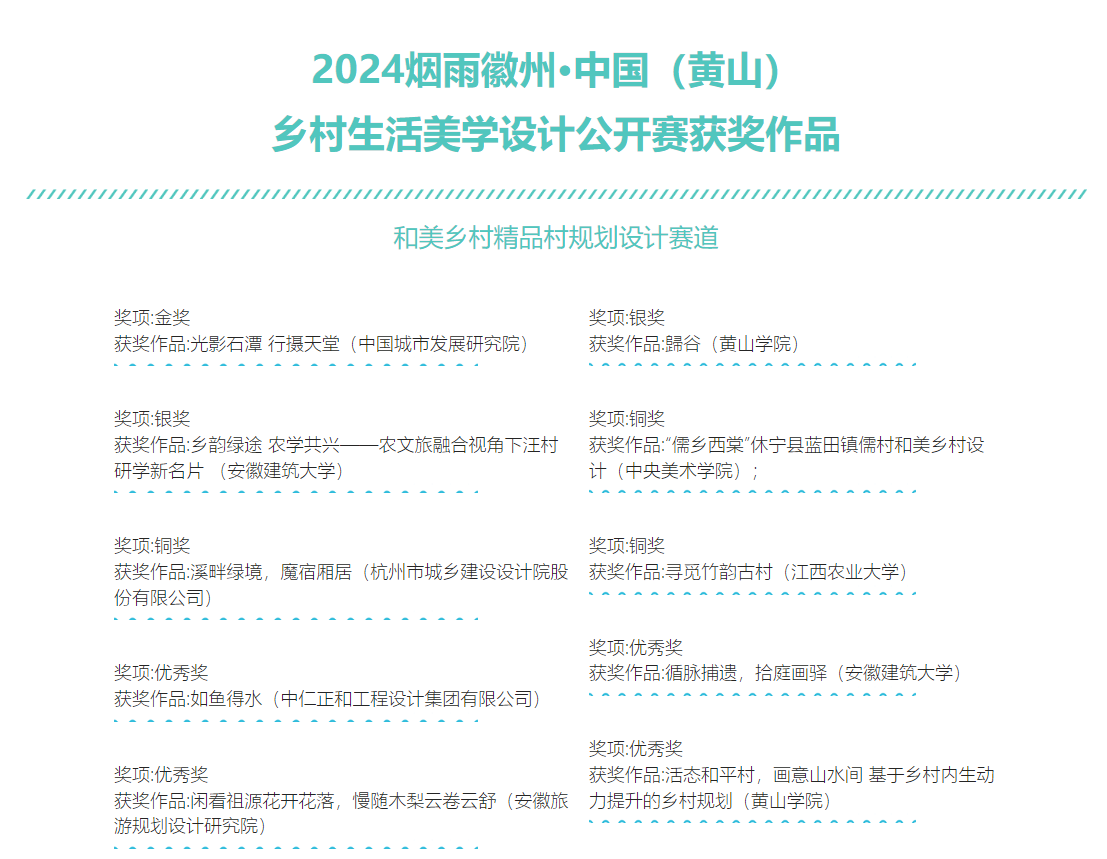 本届大赛由黄山市政府、上海大学、安徽建筑大学等联合主办,由行业知名专家负责评选工作,是以落地实施为出发点的一项赛事,吸引了国内众多知名高校、设计院所和公司团队的广泛参与。