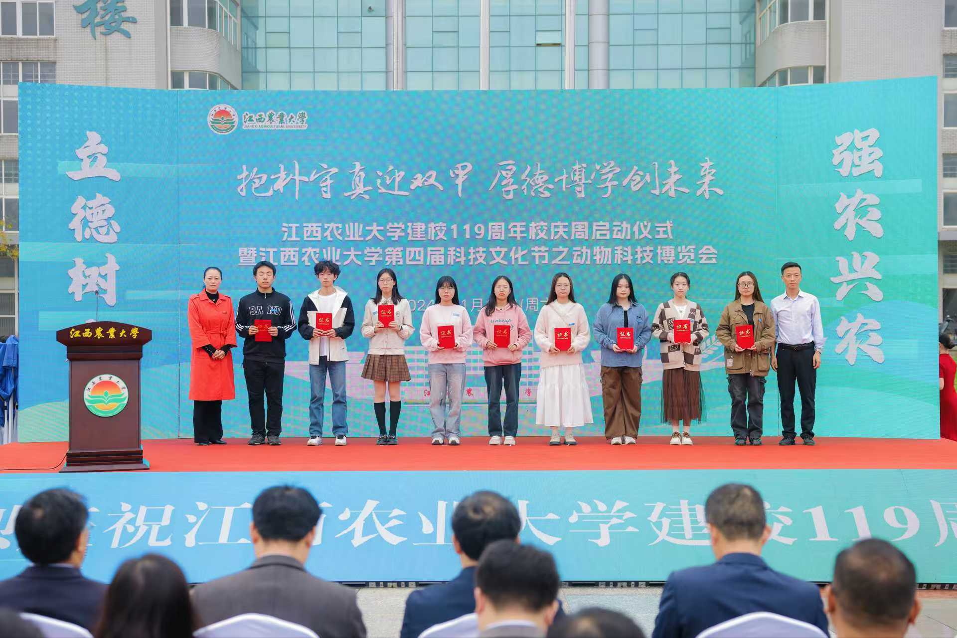 11月16日,在建校119周年校庆周启动仪式上,PA视讯学工处负责同志、园林与艺术公司党委副书记为获奖员工颁奖。获奖学子纷纷表示,要继续深化专业知识学习,提升专业素养和实践能力,为国家林业发展和生态文明建设贡献力量。