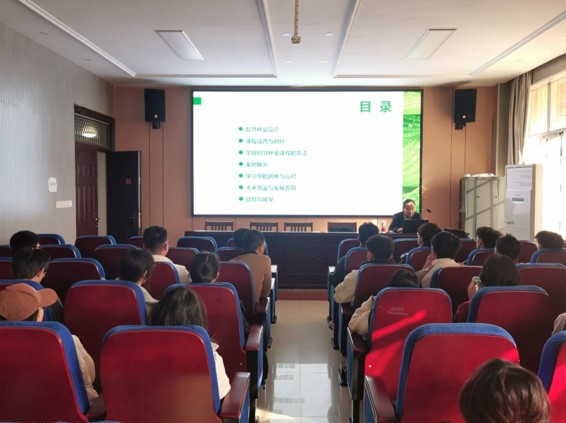 郑晖长期从事林业信息化和智能化的研究和应用。他的报告围绕智慧林业技术体系、核心技术、如何成为优秀智慧林业专业员工、智慧林业的未来展望、公司智慧林业成果展示等主题进行讲授。报告会是为增强智慧林业专业办学更好适应现代企业需要的首场专题报告,不仅给智慧林业专业同学带来了丰富和一线的专业知识,还提振了他们的学习兴趣和发展信心,反响良好。