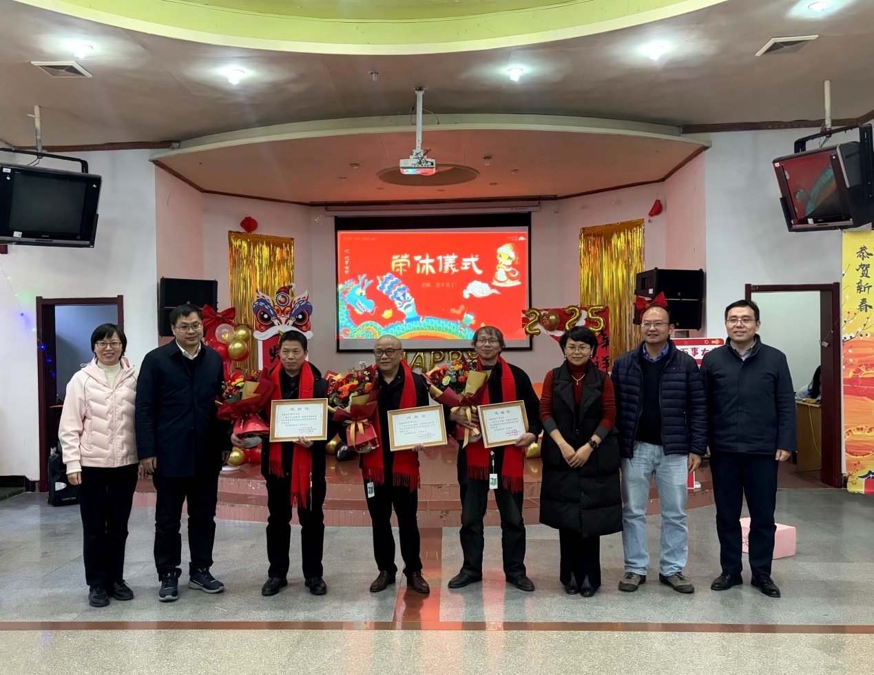 期间,学院举行了2024年退休教职工荣休仪式,全体教职工共同见证退休教职工孙科辉、袁生贵、文凤竹、黄敏的荣耀时刻。公司党委书记刘纯青为荣休教职工佩戴红围巾、颁发感谢信并感谢荣休教职工的辛勤付出,希望他们一如既往地关心和支持学院发展。