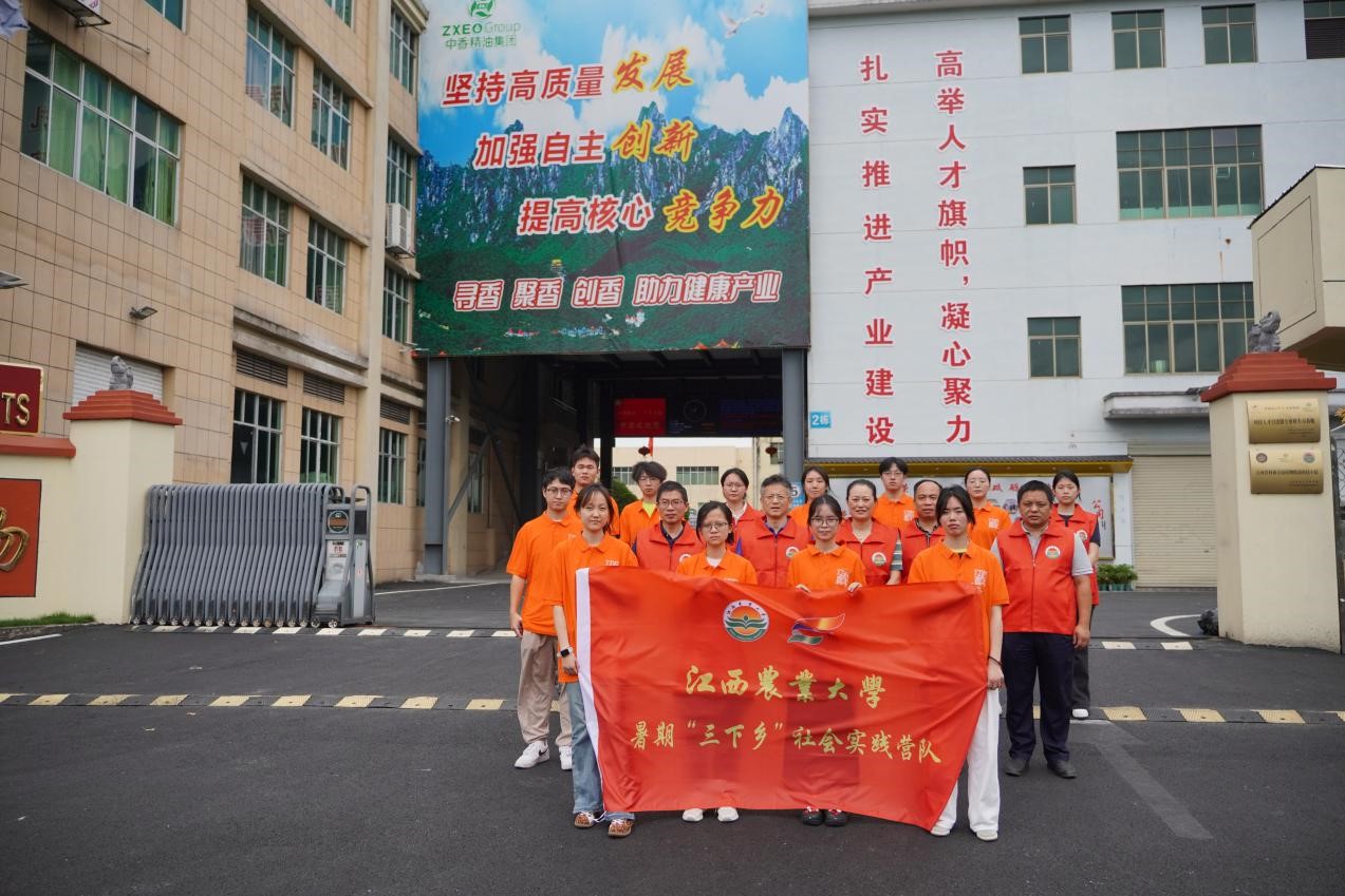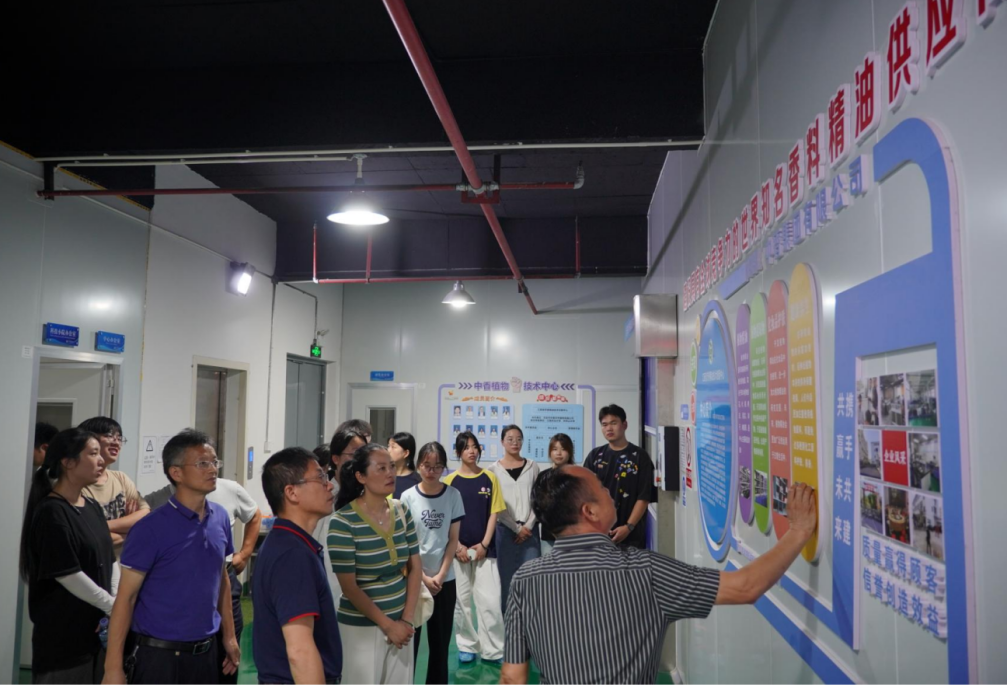 “龙脑樟产业乡村振兴团”在陈尚钘带领下,深入吉安市中香天然植物有限公司开展实践。国家林业草原木本香料中心范国荣研究员、彭大勇博士、公司董事长罗秋根参与指导。