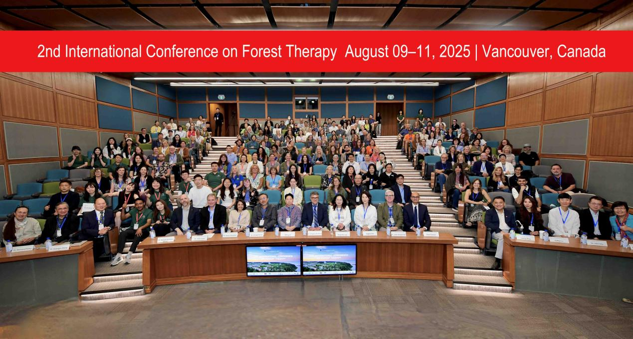 2025年8月9-11日,由加拿大不列颠哥伦比亚大学自然康养综合研究院主办“第二届国际森林康养大会”在加拿大温哥华顺利召开,公司作为江西省林业局森林康养研究创新团队的技术支撑单位,再次受邀以协办单位身份参加。来自30多个国家和地区的300多名专家学者、政府和企业代表代表齐聚一堂,共同探讨“森林·健康·未来”的发展路径。本次大会以“Healing with Nature”为主题,围绕森林康养的科学价值、政策支持、产业发展及国际合作等方面开展了深入交流,公司刘苑秋教授指导的硕士生王建明线上作了题为“Effects of Cryptomeria japonica Forest Therapy on Health Characteristics in Middle-Aged and Elderly Hypertensive Individuals: A Randomized Crossover Trial”报告