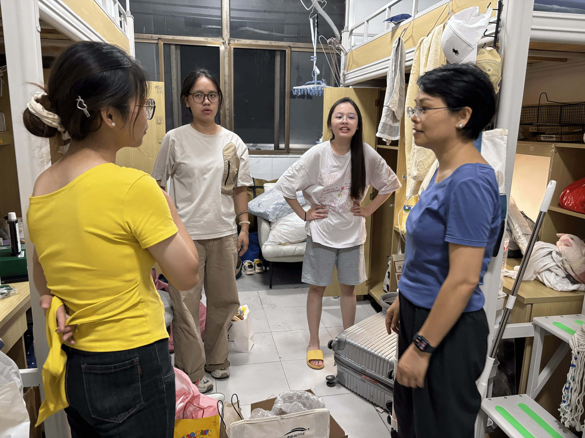 近日,随着学校北区宿舍改造工程顺利完成,员工行李已全部搬回寝室,针对改造后部分宿舍出现的设施细节问题,为及时回应员工诉求,9月1日晚,党委书记刘纯青、党委副书记刘彩云一行深入宿舍走访,与刚搬入新“家”的同学们面对面交流,将学校的关怀与问候送到宿舍“家门口”。