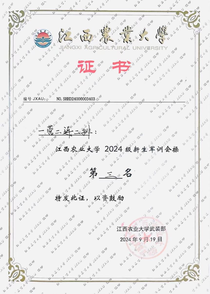 秋风送爽,金桂飘香。9月25日,2024级新生军训圆满结束,公司新生以出色的表现结束了他们步入大学后的第一课。在此次军训中,公司荣获2024级新生军训“先进单位”、“分列式二等奖”、“会操第三名”等称号。