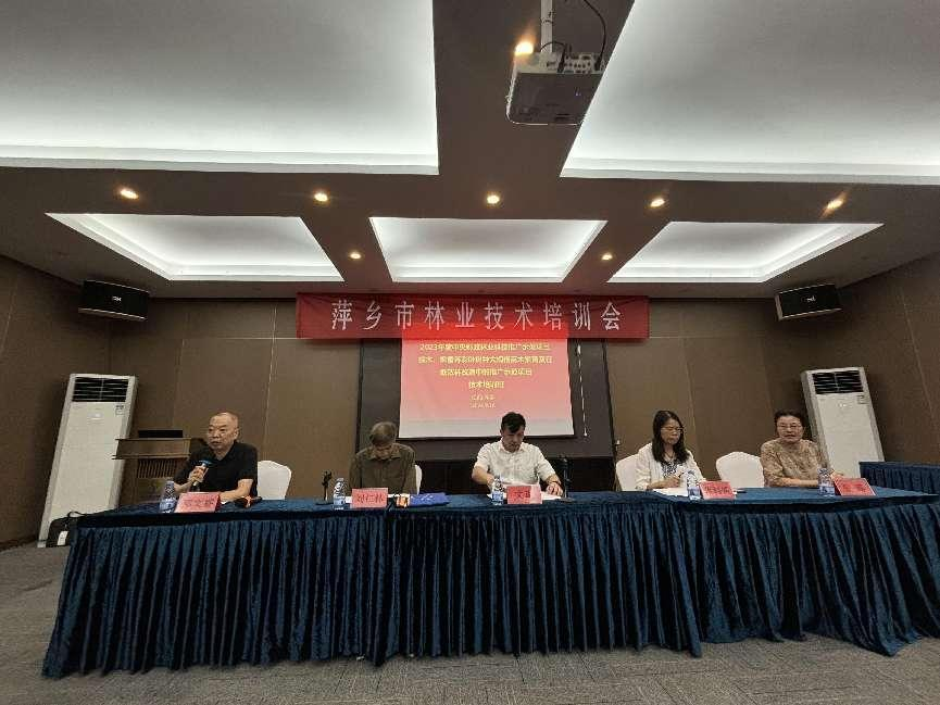 2024925-26日,由教工第一支部赖猛副教授承担的2023年度中央财政林业科技推广示范项目“檫木、枫香等彩叶树种大规格苗木繁育在低效林改造中的推广示范”在江西萍乡举办技术培训班萍乡市林业局党委委员、副局长文瑚、项目合作单位萍乡市林科所邓文睿所长、潜伟平副所长、刘江华副所长、彭辉武主任及相关科研骨干,萍乡市各县(区)林业技术推广站、国有林场、涉林企业等专业技术人员100余人参加了培训。
